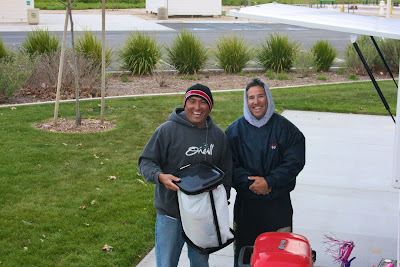 We went to Rancho Jurupa in Riverside. It's the regional park there and it's our second time going. We like it a lot. Nice and close, lakes, parks and it's huge so lots of opportunities for bike riding. We had a great time! It was our first time camping with anyone else and it was a lot of fun! The kids got along great and Devin was the best he's ever been! We're looking forward to going again with them sometime in the near future. Here are a bunch of pictures I took.